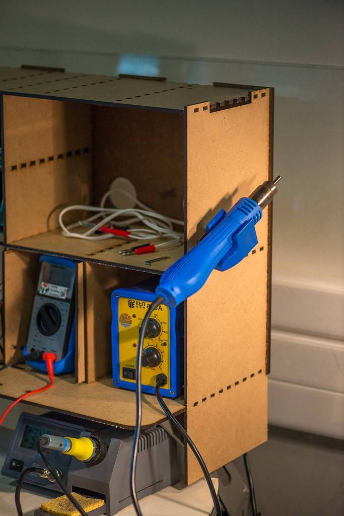 Ajout du support du fer a air chaud sur le coté de l’étagère du poste électronique