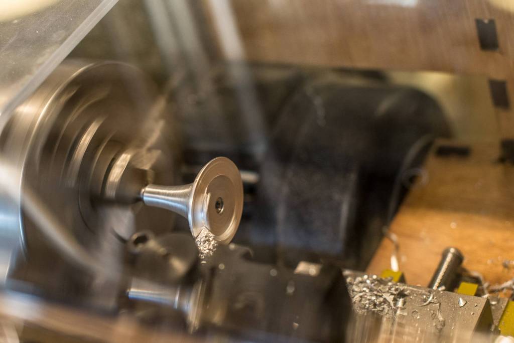 Pour la partie mobile j'ai décider d'usiner la forme souhaitée dans un cylindre en fonte d’aluminium, réalisé par Manu. et les jeunes de d.click en faisant fondre de vieux radiateur de PC mis au rebut (Un grand merci à eux ! ). Pour l'usinage au tour à commande numérique j'ai dessiné ma forme sous inkscape et utilisé le plugin de génération de gcode tel que décrit ici, avec ces paramètres de coupe :