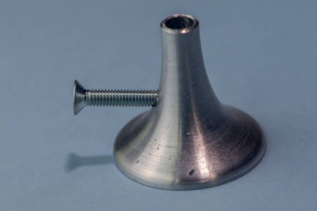Un trusquin est composé de deux partie, une partie 'fixe' sur laquelle est fixée l’élément de traçage et une partie mobile, plate, qui permet régler de la mesure souhaitée (une vis permet de la serrer sur la partie centrale) et de s'appuyer correctement sur la surface de référence. J'ai opté pour un design en métal, cylindrique, plutôt que pour la version traditionnelle en bois. Cela me permettra d'usiner ma première pièce en aluminium avec le tour du fablab.