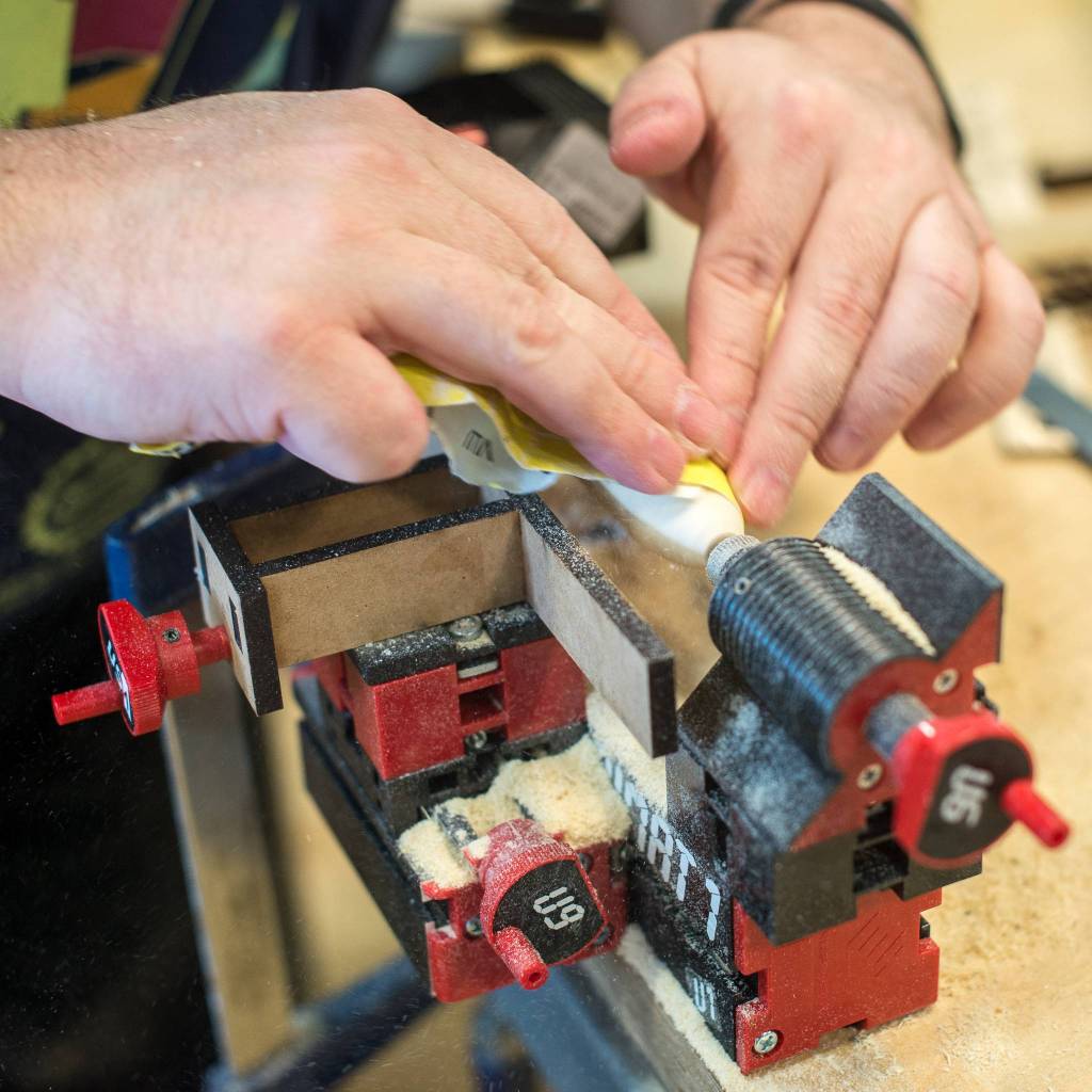 Fabrication de petit plateaux en médium pour déposer les miroirs, buse et lentille des découpeuses laser après leur nettoyage. Cela permettra à chacun de vérifier lui même l’état des éléments optiques et d'assurer un montage correct de ces éléments avant ses découpes.