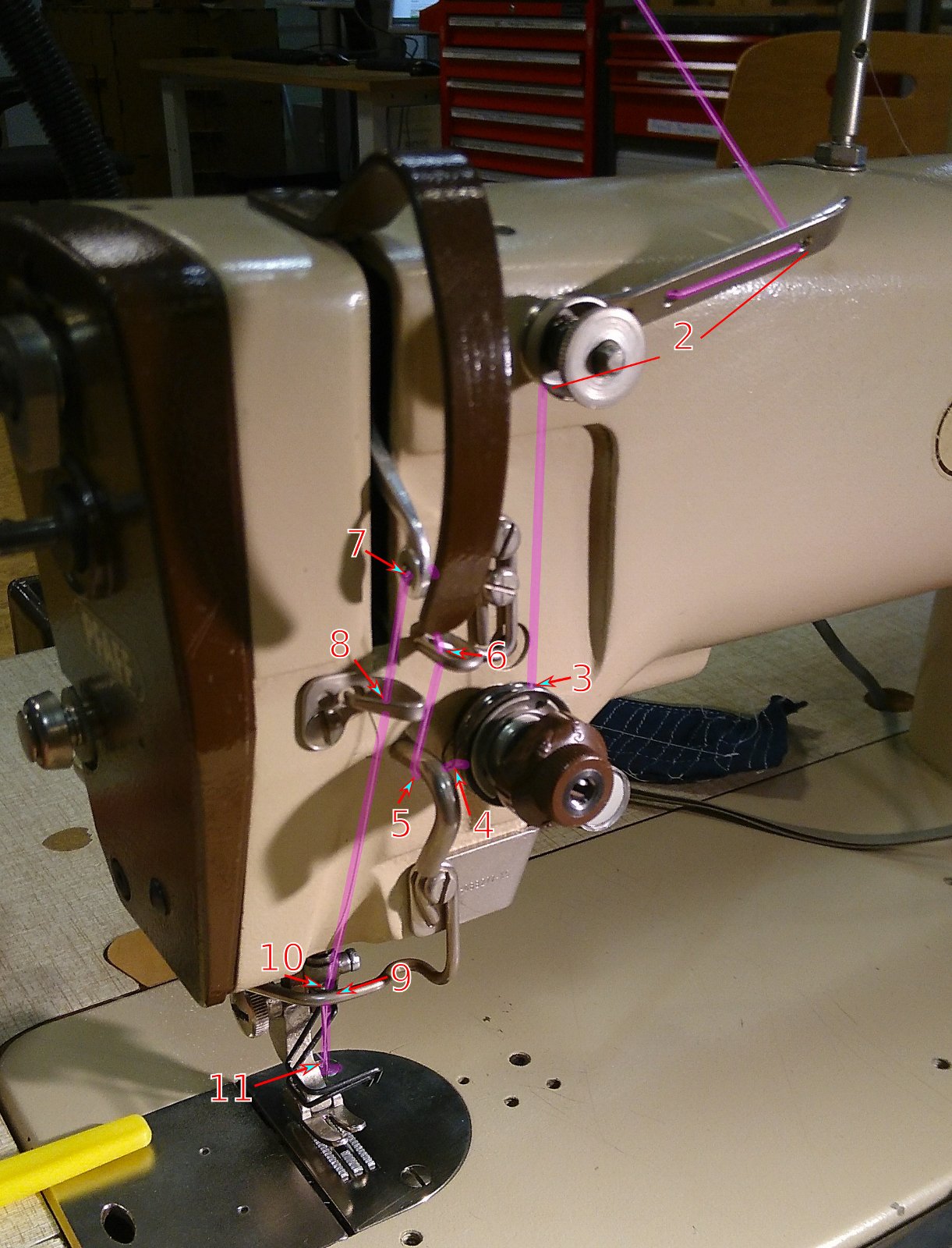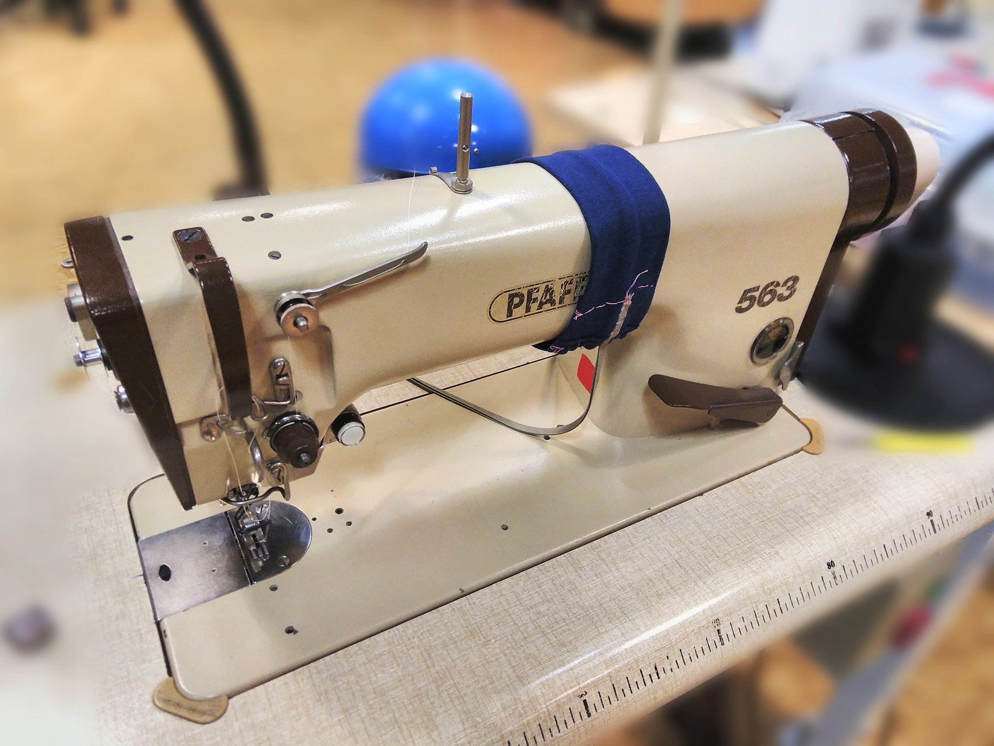 Machine permettant la couture uniquement en point droit, notamment de matériaux épais (tissus épais et toiles).