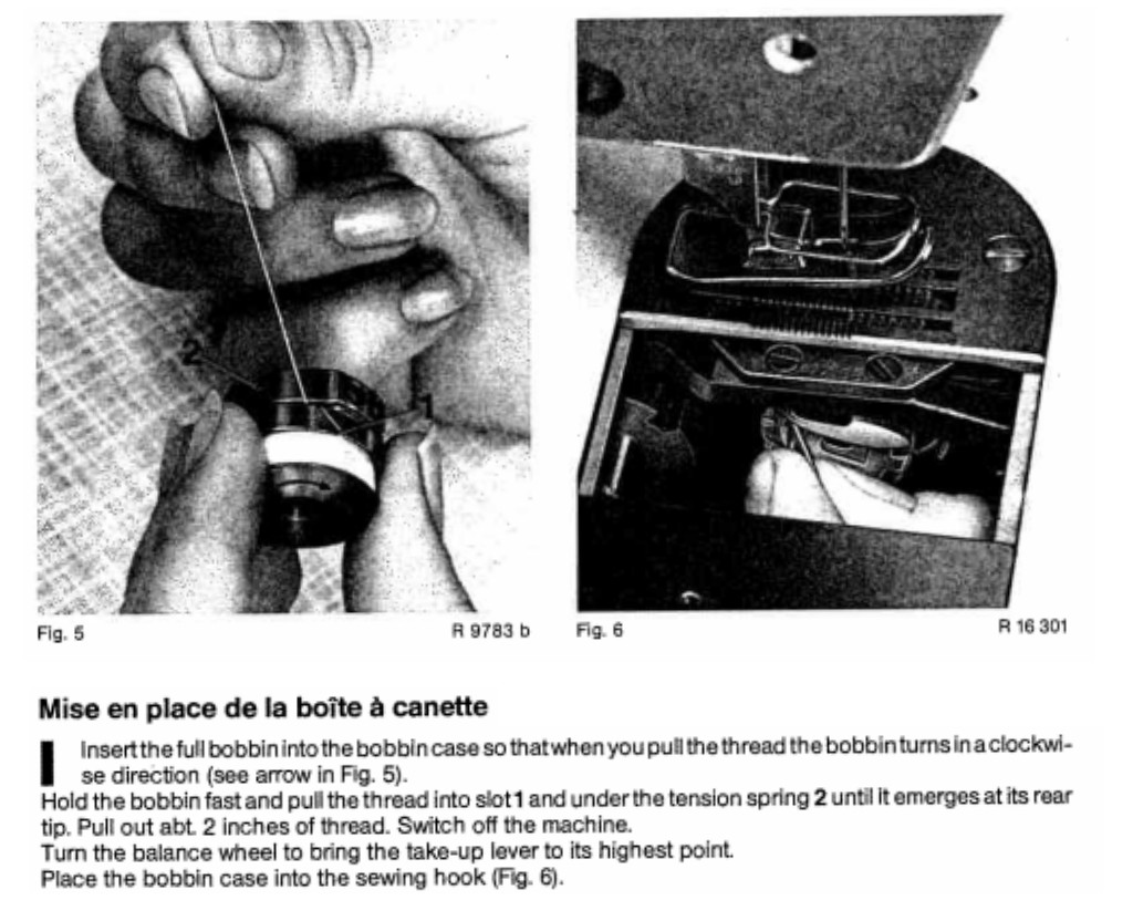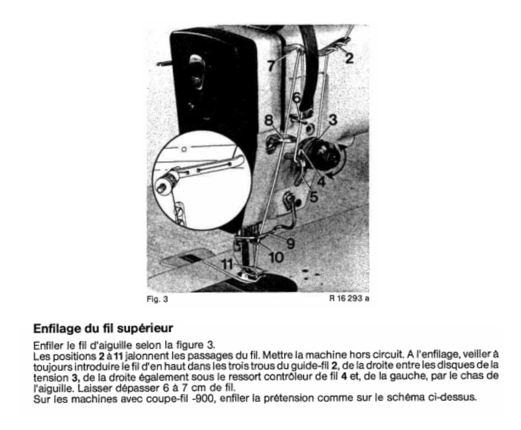 - Les manipulations avec les mains proches de l'aiguille (mise en place de la canette, passage de fil, relevage du pied, placement du tissu,…) se font machine éteinte électriquement / moteur coupé