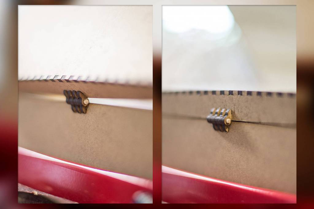 J'ai fini par le collage et la mise en place des charnières, j'ai utilisé des petits morceau de pic à brochette en bois, passé au papier de verre, comme axe (entré légèrement à force). Une fois le tout sec, et le fonctionnement correct du couvercle vérifié, j'ai ajouté une goutte de colle cyanoacrylate aux extrémités de chaque axe pour éviter que ces derniers ne finissent par glisser à l'usage.