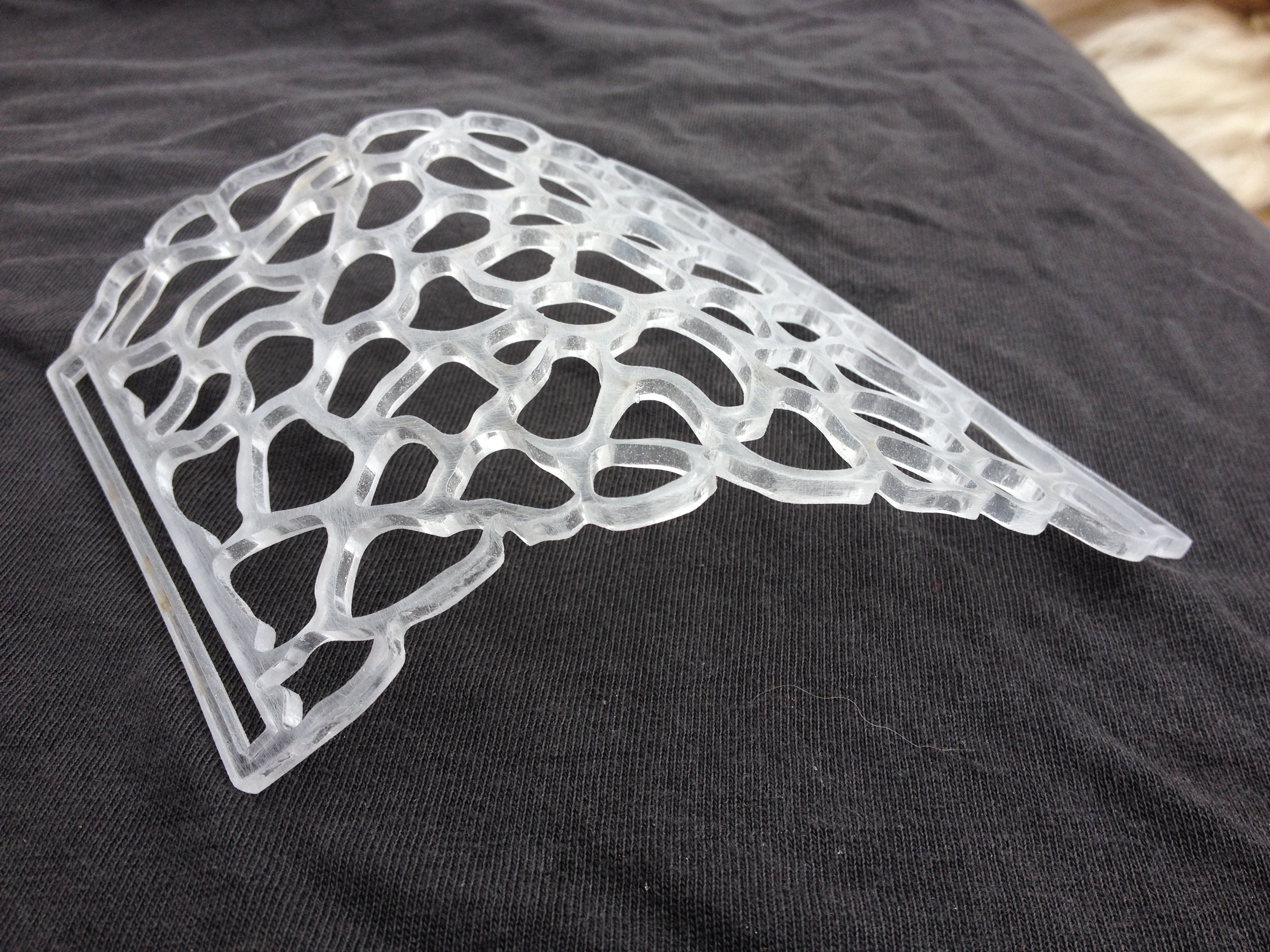 Après avoir dessiner les éléments en vectoriel sous Illustrator, j'ai pu faire faire quelques tests assez intéressants avec la découpe laser. En effet, ils m'ont permis de me rendre compte que mes tracés étaient un peu trop proches ce qui pouvait rendre ma structure fragile. Mais surtout, en faisant des essais avec différents matériaux (Plexiglass - Caoutchouc), cela m'a permise de choisir ceux qui seront le plus à même de convenir.