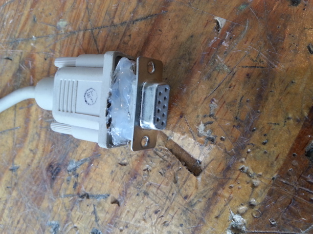 Comme je n'avais pas de câble série j'ai utilisé un câble VGA à une des extrémités duquel j'ai soudé en embout femelle. c'est assez moche mais ça fait le job.