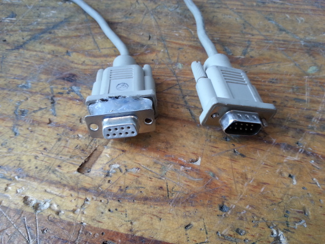 Manque de pot, impossible d'envoyer le HP-GL par l'USB. La découpeuse, quoique soi-disant reconnue et bien installée comme semble l'attester le gestionnaire de périphériques de Windows XP reste immobile et Inkscape plante systématiquement. j'ai alors essayé par le port série (D-SUB9) et là! La puma a sorti ses griffes pour de bon et s'est mise à découper le petit ovale vert que j'avais dessiné dans inkscape! Comme je n'avais pas de câble série j'ai utilisé un câble VGA à une des extrémités duquel j'ai soudé en embout femelle. c'est assez moche mais ça fait le job. Comme quoi on peut se passer d'un quelconque soft propriétaire pour piloter une imprimante qui accepte le HP-GL.