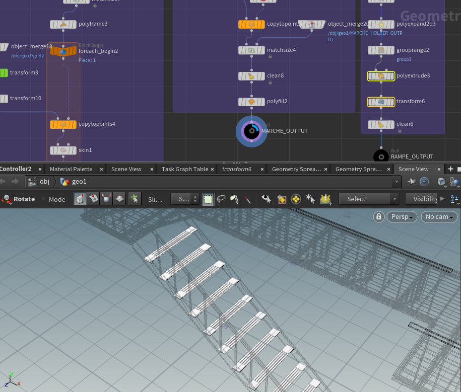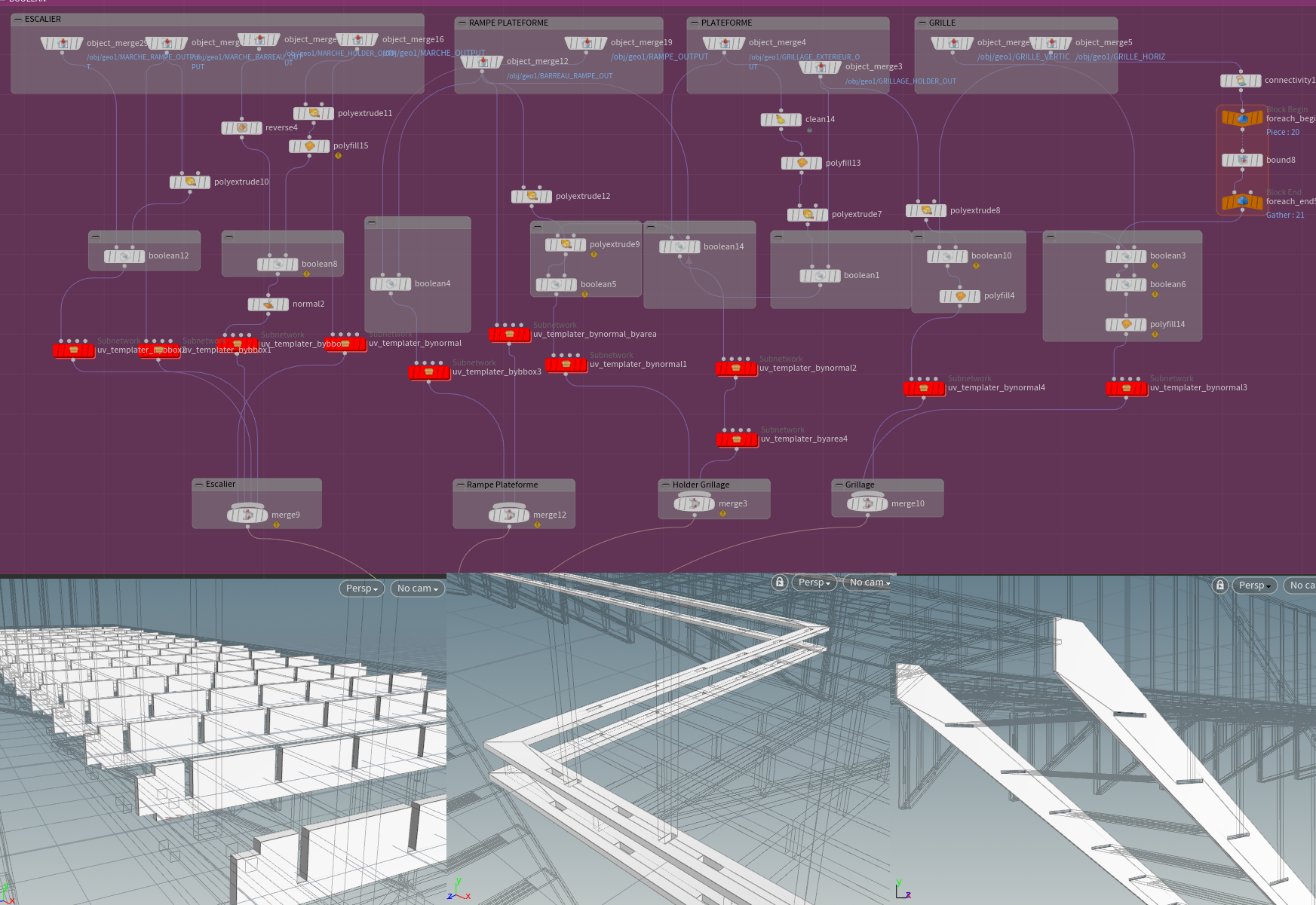 Je supprime des modules, j'en déplace un autre puis je les merge tous ensemble pour obtenir un template de ce que sera mon escalier de secours.