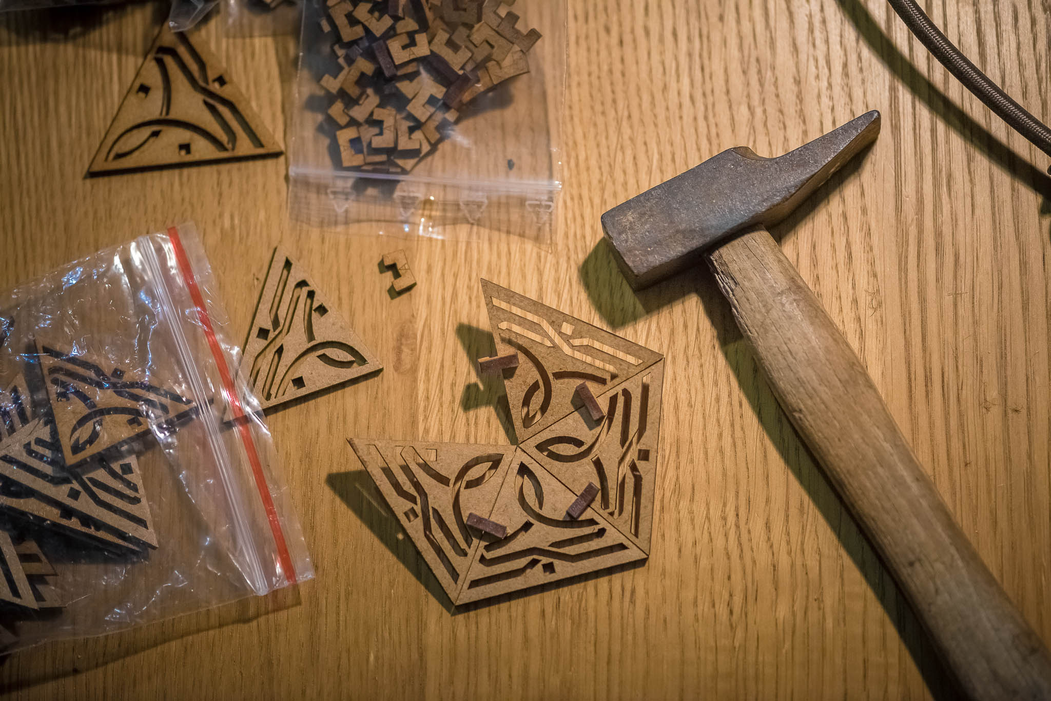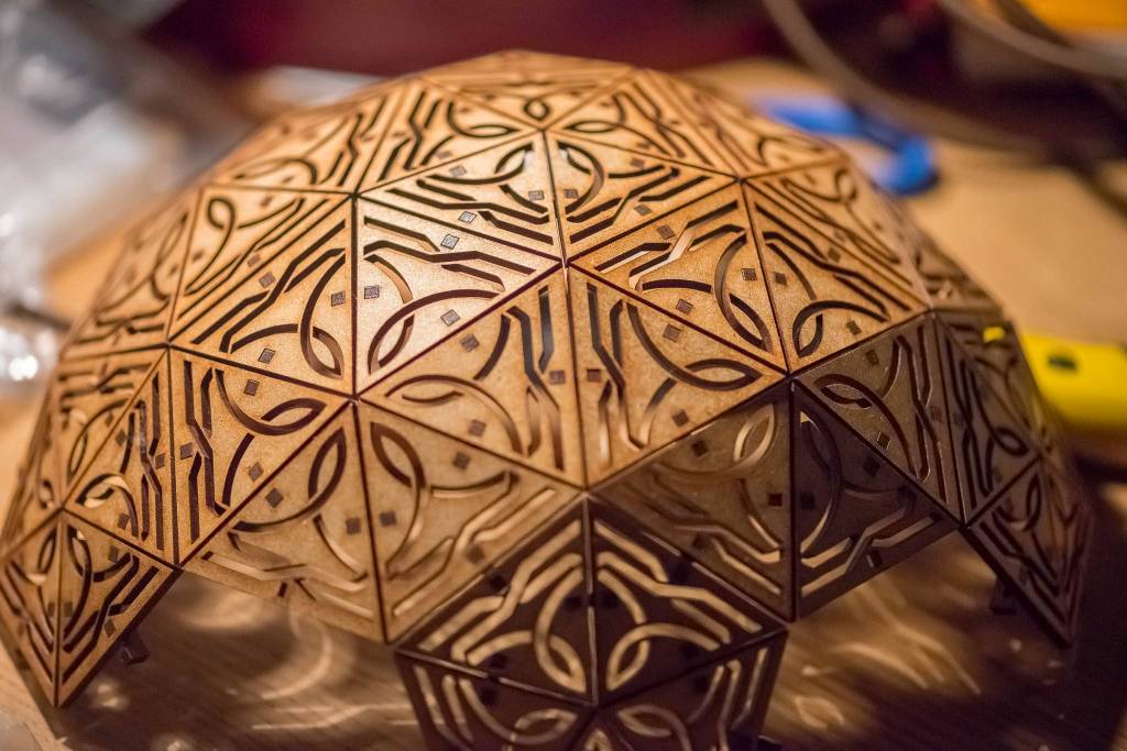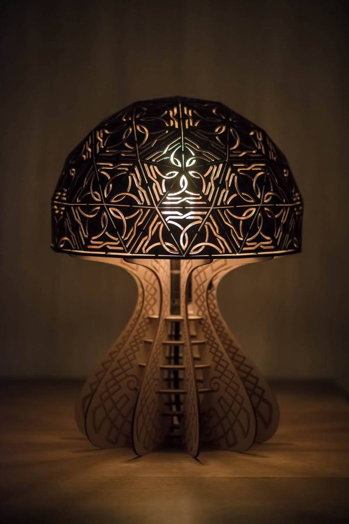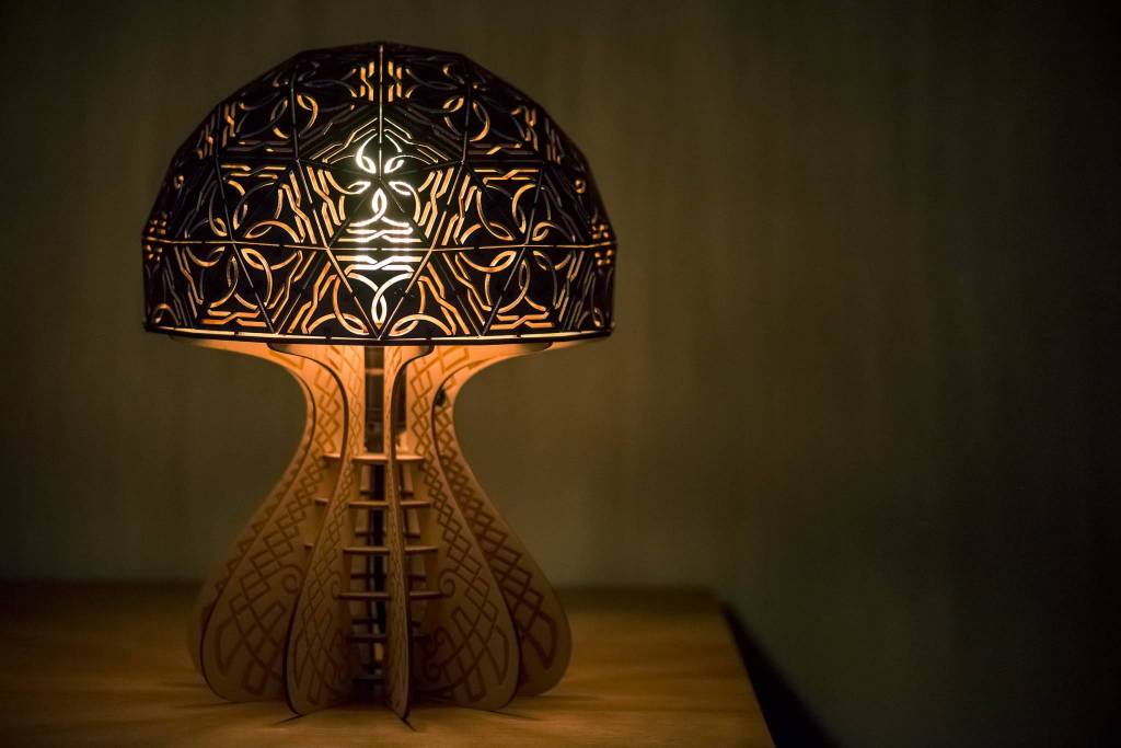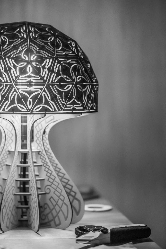 Fabrication d'une lampe en forme de champignon, décorée avec des motifs inspiré des nœuds celtiques/nordiques.