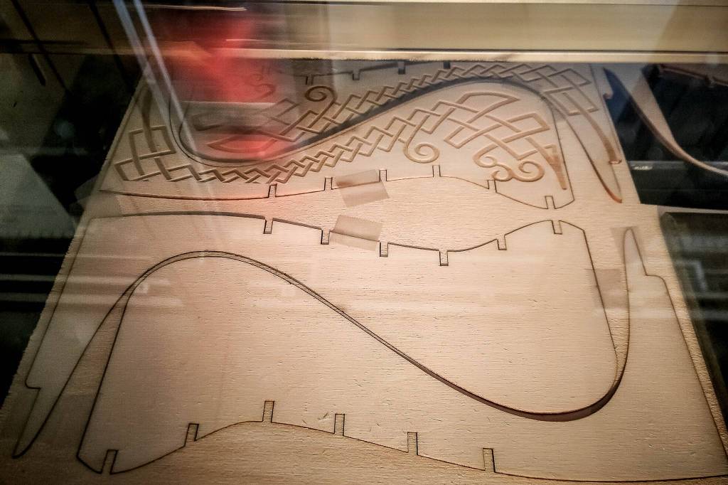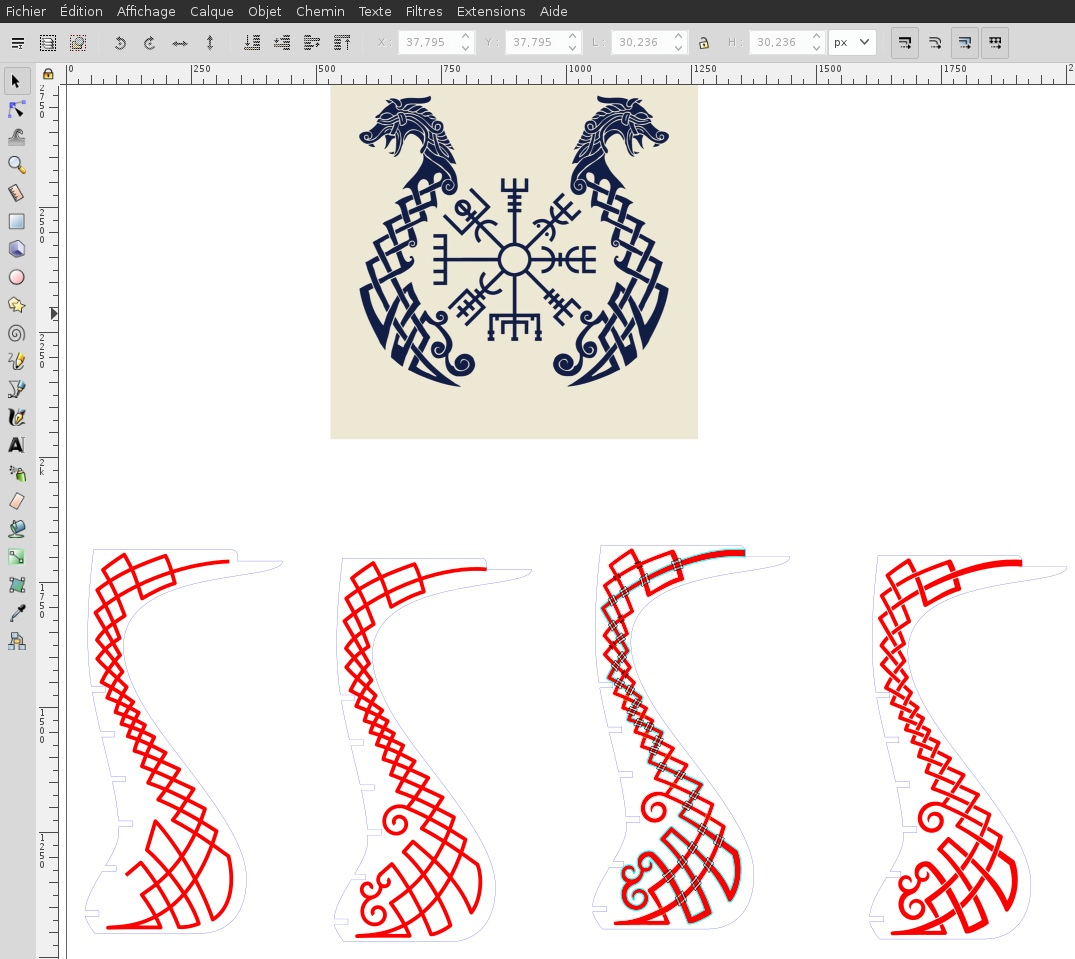 Fig. 4: Dessin des entrelacs décorant le pied, inspirés d'un motif de cheval nordique.