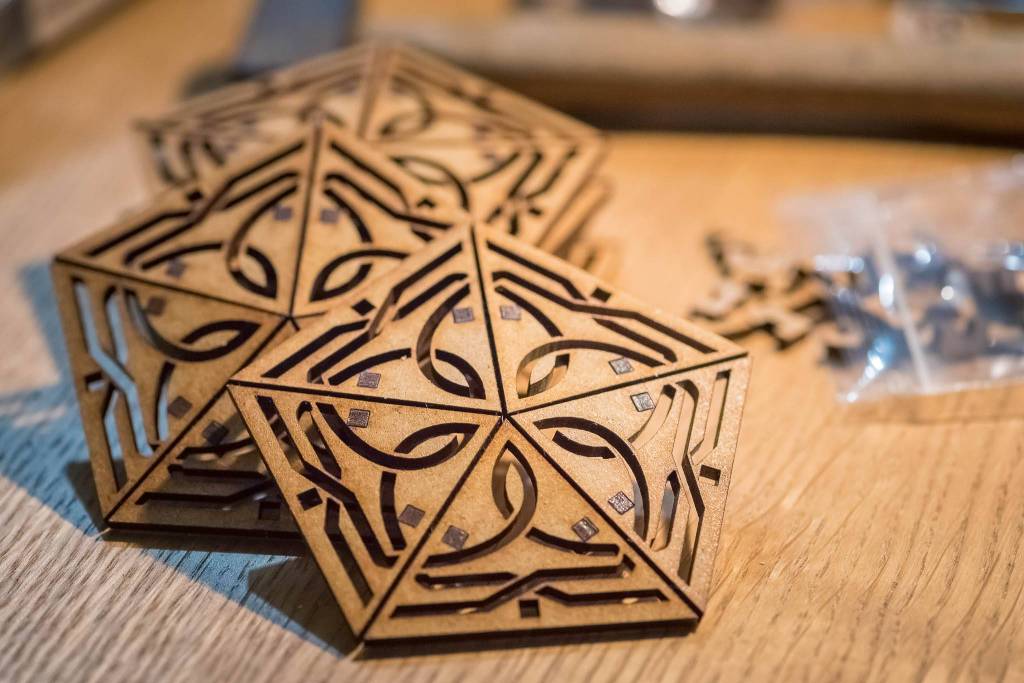 Fig. 6: Montage des pentagone et hexagone du dome avec les connecteur A,B et C