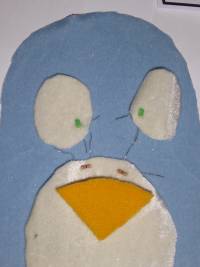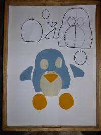 Idée : simplifier mon projet de pingouin robot en faisant un dessin sur une bout de tissu découpé en forme de pingouin, et en utilisant des leds classiques.