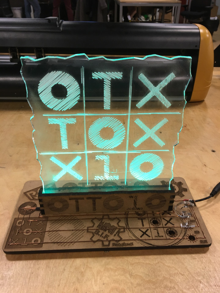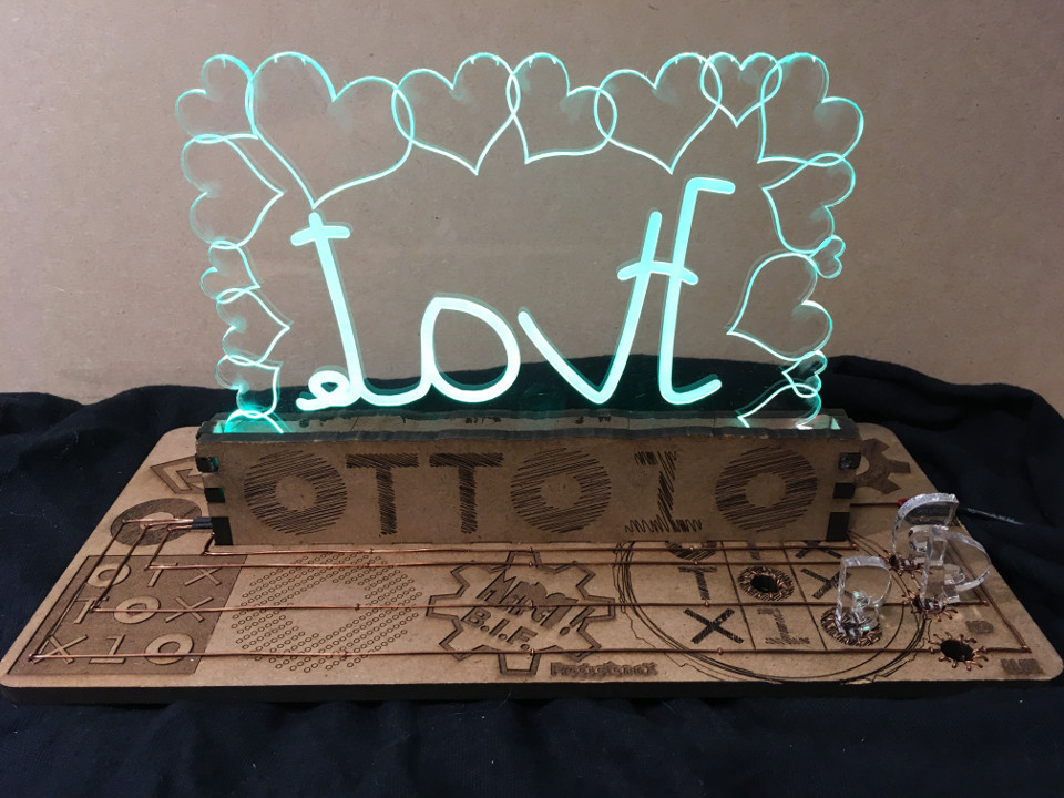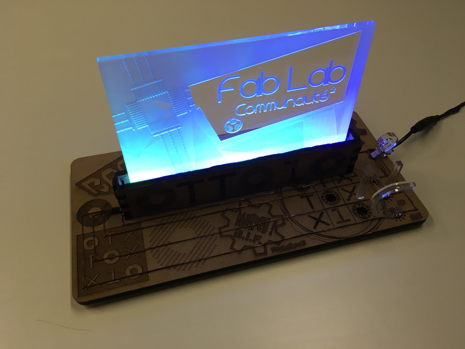 Je dessine et je réalise avec la découpeuse laser un support pour tenir le plexi en découpant les interrupteurs pour sélectionner la couleur souhaitée.