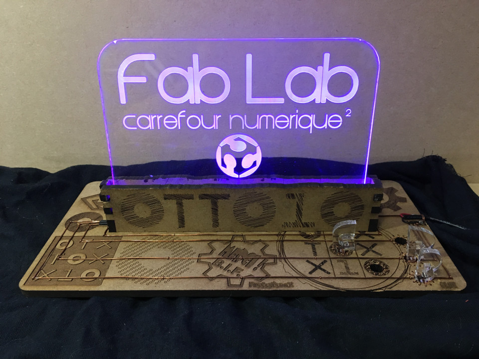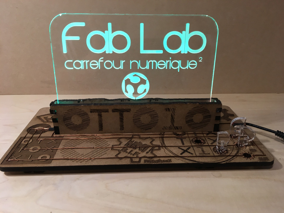 Je dessine et je réalise avec la découpeuse laser un support pour tenir le plexi en découpant les interrupteurs pour sélectionner la couleur souhaitée.