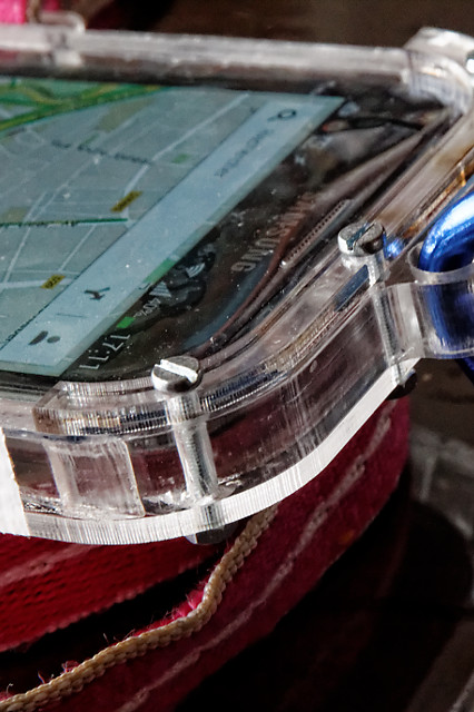 L'étanchéité des trous restants est assurées par du scotch résistant à l”humidité. On insère un petit poussoir en bois en face du bouton M/A. Le bouchon est inséré et serré avec 3 vis (ne pas trop forcer le PMMA est fragile).