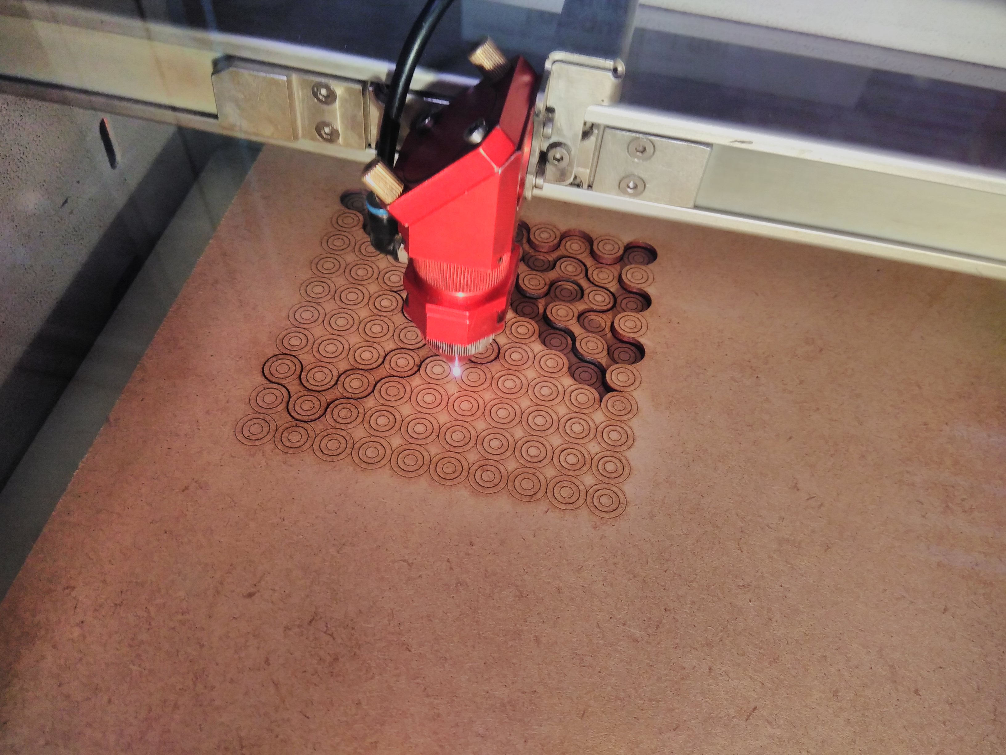 J'ai finalement modifié ma forme de base en 3 cercles concentriques rouges, afin d’obtenir le dessin à marquer sur les pièces.