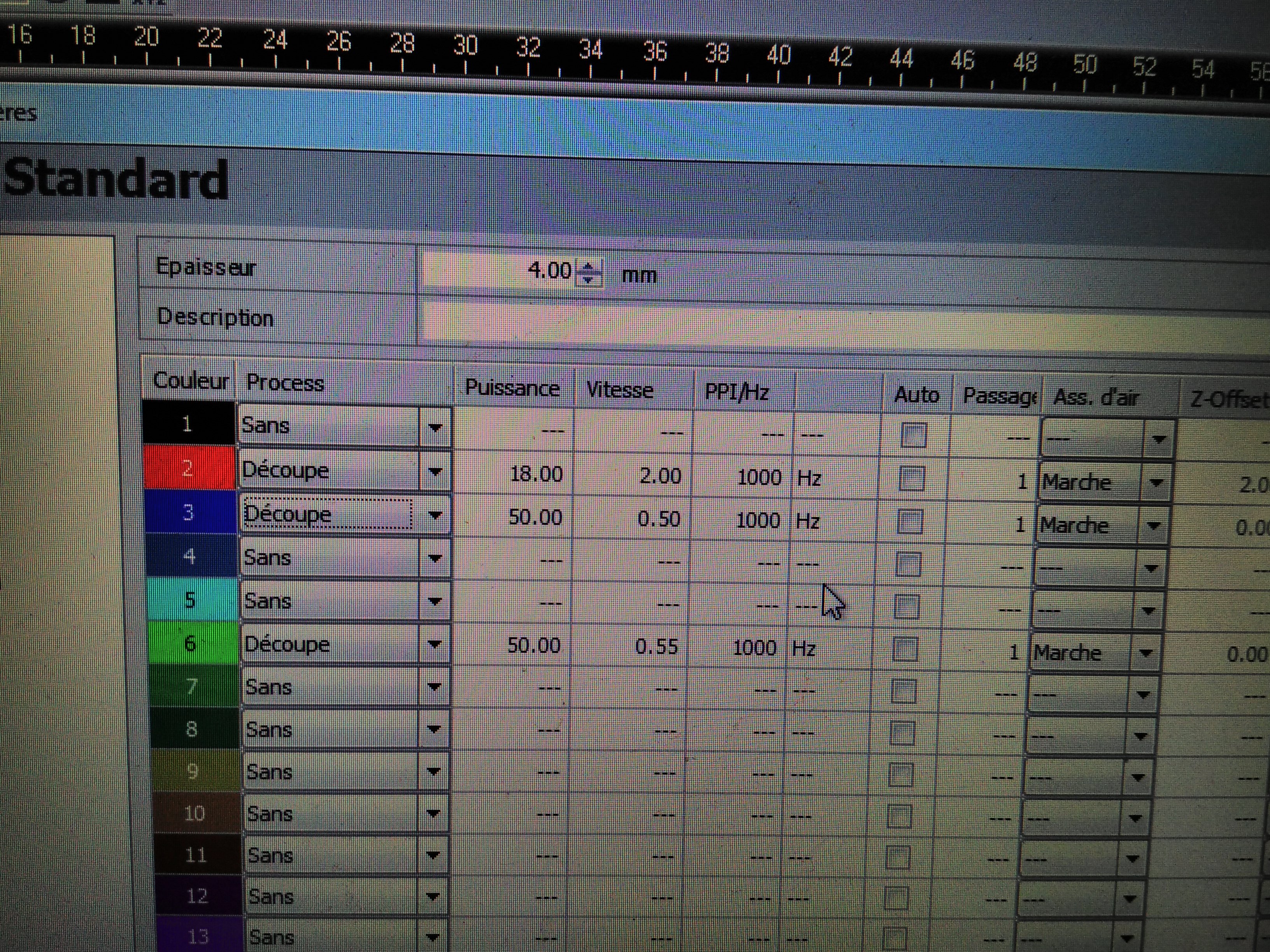 Fig. 3: Exemple de réglages pour le marquage et la découpe des pieces