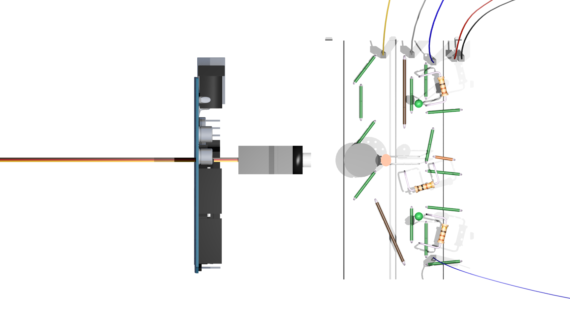 Je dois cependant retravailler un nouveau fichier blend (+ version ortho) une fois avoir refait mon montage sur la breadboard, en surélevant un peu les résistances et en plaçant les composants de manière plus compacte et logique. Le dernier test devra être revu en fonction du travail sur Inkscape.