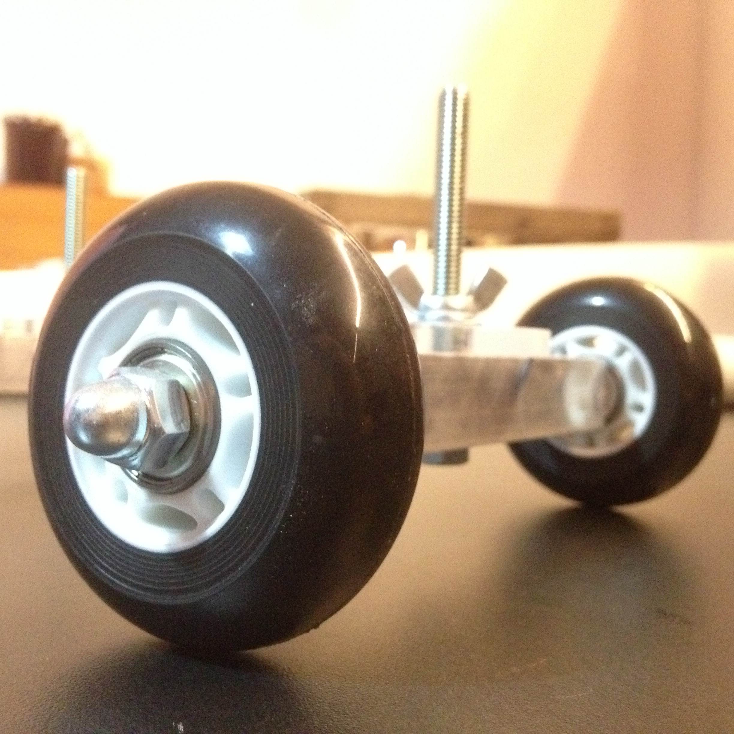 Les roues et les roulements à bille sont facilement trouvables chez décathlon (pour pas trop cher !)