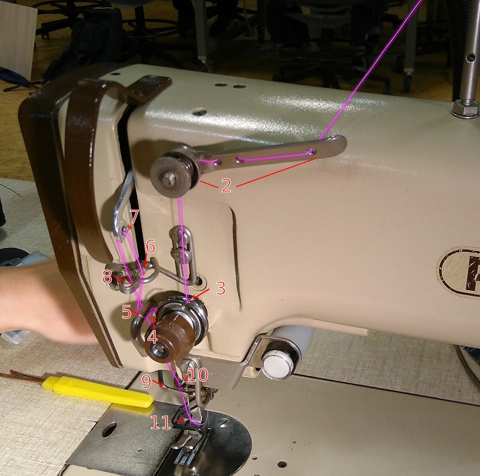Machine permettant la couture uniquement en point droit, notamment de matériaux épais (tissus épais et toiles).
