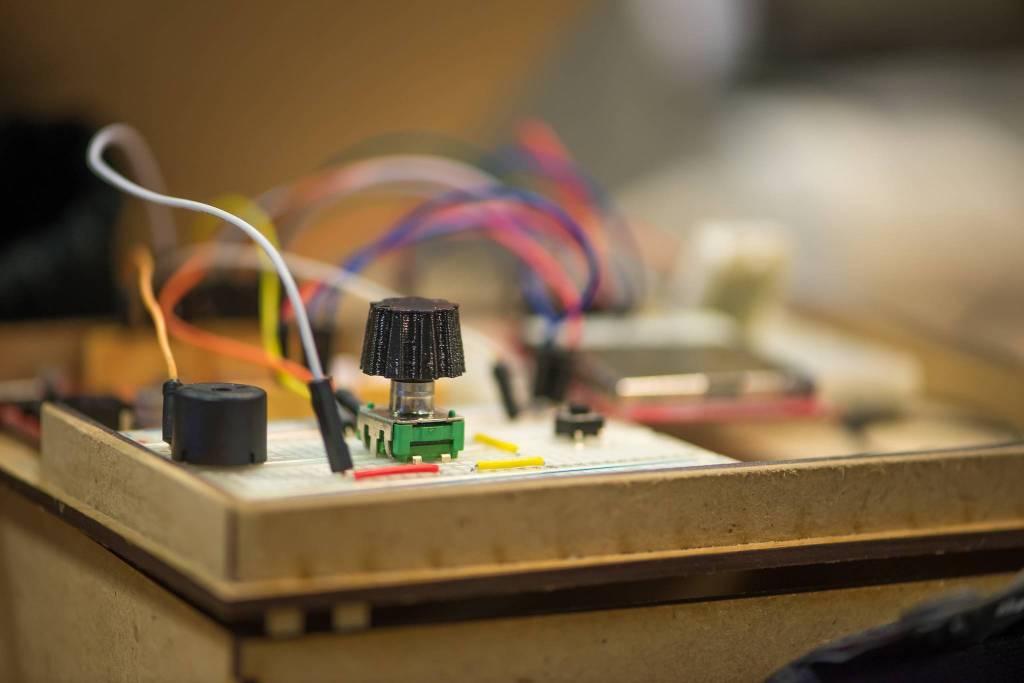 Électronique : essais de montage variateur (leds, moteur, …) PWM à base de NE555. Utilisation de l'oscilloscope (prêté au Fab lab par un usager) pour visualiser la différence de phase.
