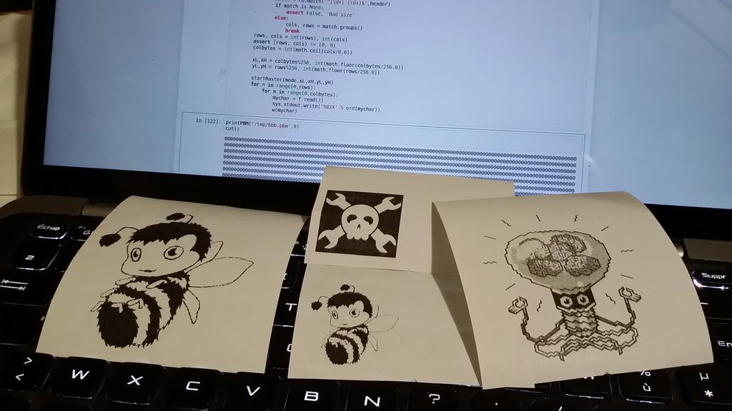 La fonctionalité importante apportée dans cette bibliothèque est la possibilité d'imprimer des images à partir d'un fichier PBM1). Ce format, géré sans problèmes par The Gimp et ImageMagick, contient l'image encodée en binaire exactement sous la forme dont nous avons besoin. Le script de lecture des fichier pbm est très fortement inspiré d'un article parus dans GNU/Linux magazine n°147.