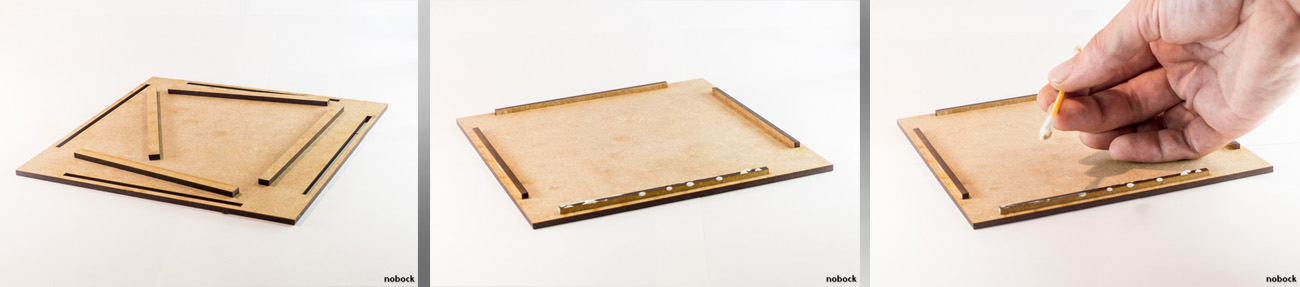 Si vous devez peindre votre modèle il est préférable de le peindre après l'assemblage. Si ce n'est pas possible essayer d'avoir le moins de parties possible à assembler. Protégez les encoches avec du scotch “doux” si voulez peindre pièce par pièce ou ajouter une légère tolérance à vos encoche. Une fois la peinture appliquée les encoches ont plus de mal à rentrer dans les trous. Limer n'est pas une bonne idées car ont retrouve vite le côté fibreux du mdf gommé par la découpe laser.