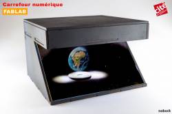Mon premier projet ! Je possède chez moi une version plus grande de cet objet mais le transport n'est pas évident et la production est assez “artisanale”. J'ai souhaité utiliser les outils de la fablab pour réaliser une version compact ayant une qualité de “production”. Je vais essayer de documenter au maximum pour tout ceux qui ce posent des questions et qui ne trouve pas de réponse sur la toile. Un peu d'électronique basique, de la découpe laser sur du medium de 3mm d'épaisseur.