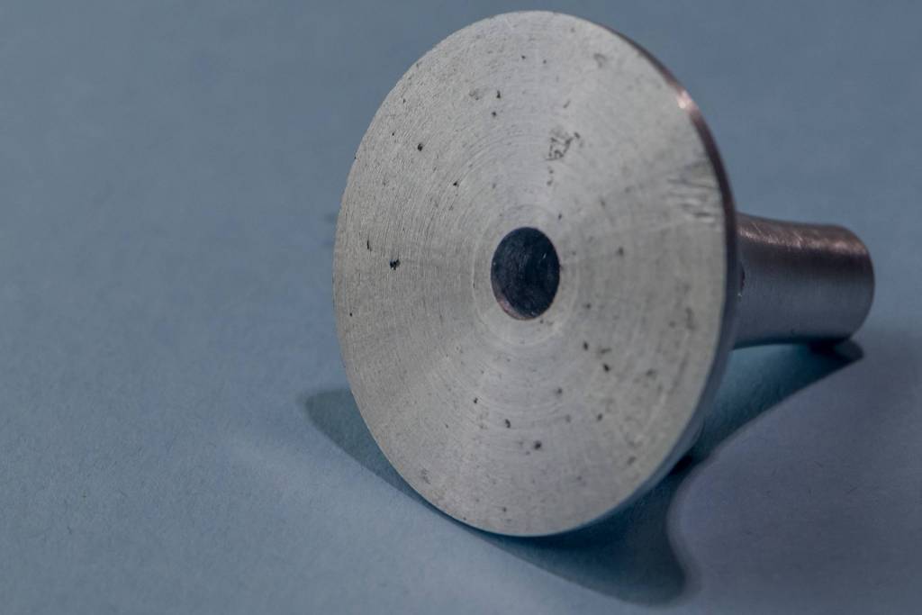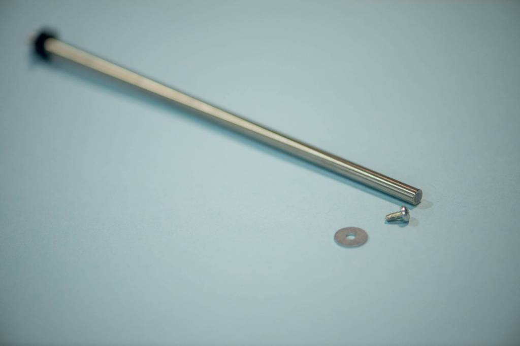 Pour la partie fixe j'ai décidé d'utiliser un un axe en acier inoxydable récupéré dans une vielle imprimante, l’élément traçant (la roulette coupante) sera quand a lui réalisé à partir d'une rondelle limé en biseau d'un coté.