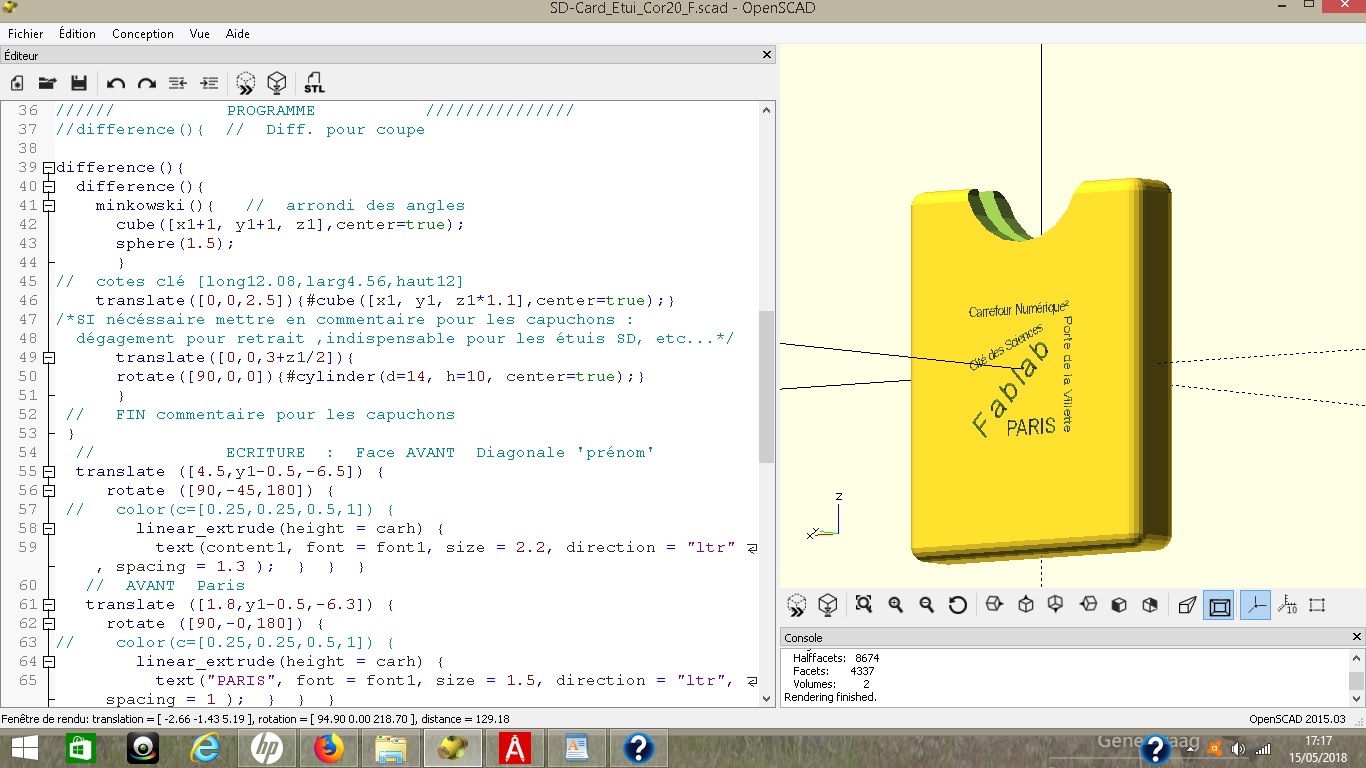 Suite à l'initiation à OpenSCAD 1er vendredi février 2018.