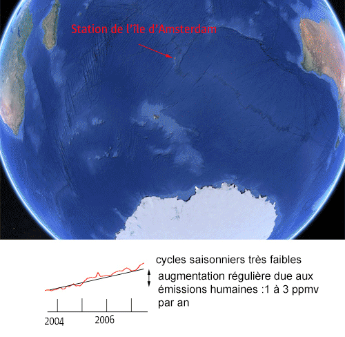 Cette croissance, due aux activités humaines, de 1 à 3 ppmv par an, est observée sur les stations de l’ensemble du globe, même situées à grande distance de ces activités.